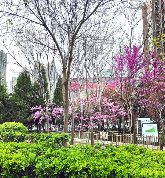 商城的春天多姿多彩,举目寻望,随意一处都是景致,加上适宜的气温,容入其中,益心益身。春意浓,幸福感亦浓。