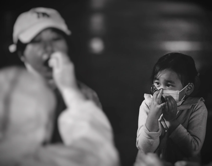这是一个对连续不断地进行每日全民核酸检测记录的眼神!短短一瞬间、孩子天真无邪的眼神中刻满了那段艰辛日子无奈的一切……微耸的小肩膀、护在前胸的双臂、以及紧紧地捂着戴了口罩的一双小手、还有那已不受控制张开了的小手指……虽然看到的只是一副静态,却让人从静止中感受到了特有的刹那间!2022年的苏州、从2月到4月,这么长日子里的一切、都浓缩在了摄影师按下快门的瞬间……