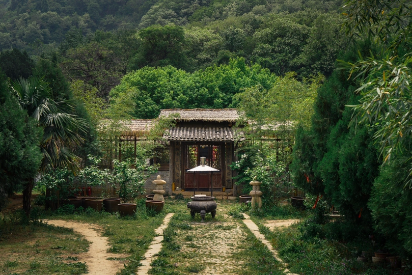 秦岭山色翠绿,林深古寺幽静。