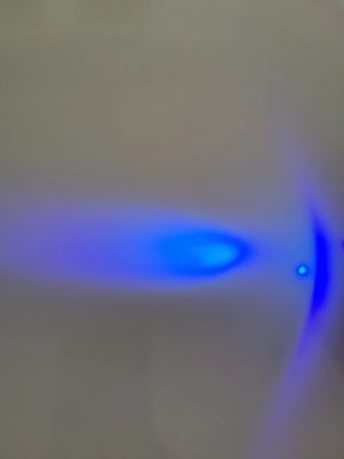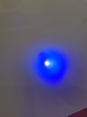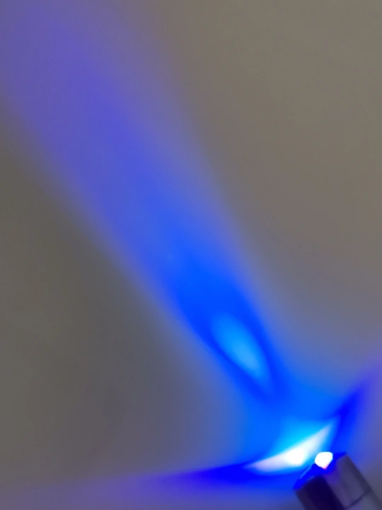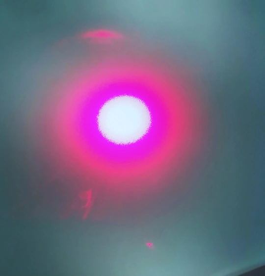 很有趣,把光源投射到反光的物体上,用手机变换不同的角度拍摄,会稍微有点稚嫩幻觉的效果…