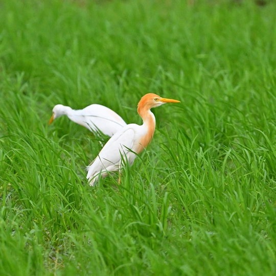 漫游在水田的牛背鹭