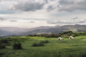 英国湖区,温德米尔,彼得兔的故乡。 傍晚登山,湖畔的orrest head。 上山路上的草甸,吃草的两只羊。 希望暖暖的照着,一片祥和。