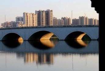 初阳已透过雾霭, 照暖了阒无一人的堤岸, 眼前的一切无不光莹四射。