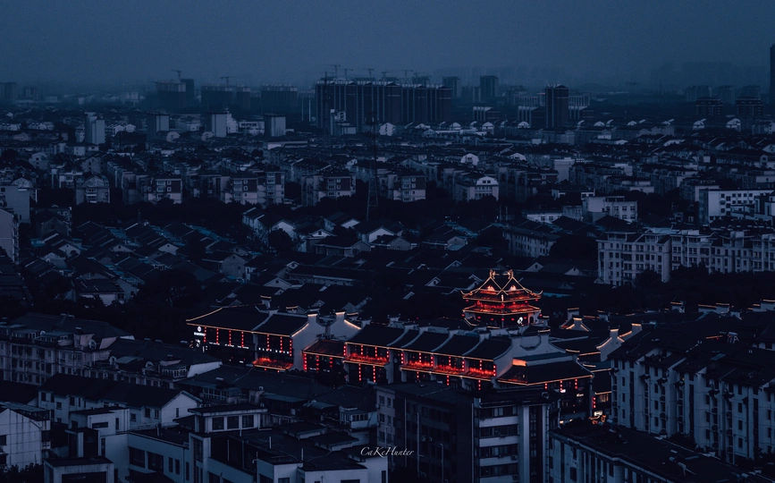 城市蓝调时分,在居民楼顶俯拍下了夜幕中的杨舍老街。作为张家港的代表性地标建筑之一,其造型模仿了江南水乡的传统旧屋,独具特色。为了凸显灯光的勾勒下的杨舍老街,我在原片的基础上,略加了一点色彩上的加深处理。 @米拍 @米拍社长 @米拍编少