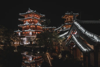 趁空去了一次金陵小城,确实名副其实的“小”,规格相比较于拈花湾或者大唐芙蓉园来说,整体的规格并不大,整个园区多以重复建筑为主,初进入,乍欢喜,但久待难免就有些视觉疲劳了。 整体建筑偏唐风,小桥流水俱全,远眺可观牛首山,作为牛首山的附园还不错。夜晚更像是个灯光秀,另外需要注意的是:金陵小城无人机禁飞,所以,也就没有空中视角的了,有些可惜。