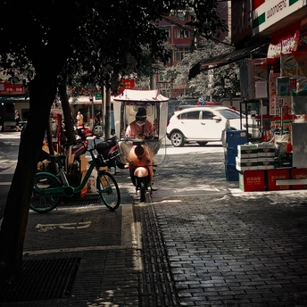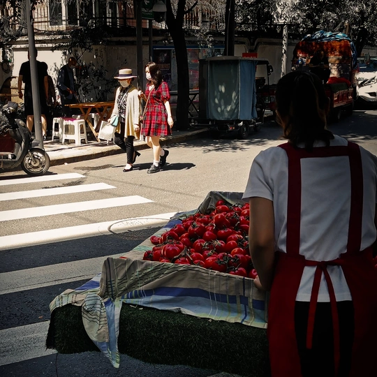 每天都要经过的一条小街,人来人往,有小吃有菜市,有小超市,还有网红鸡杂,小笼包子,街头理发,以及流动的水果摊贩。走进小街,买东西、吃饭很方便,价格也便宜。在成都这样的繁华大都市里,有不少这样的小街。小街记录了老百姓日常的街头生活,春夏秋冬,日复一日。