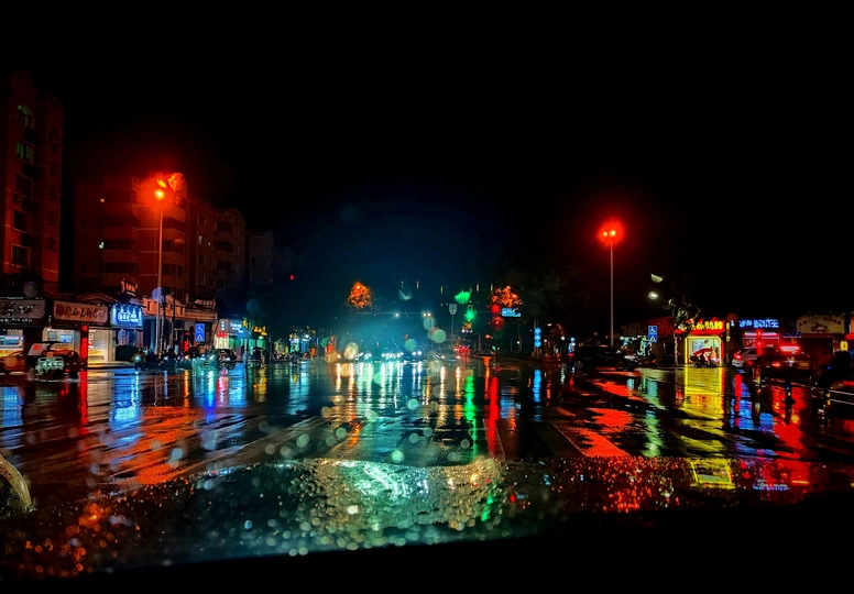 雨夜归家路,路边的铺面招牌灯告诉你他们也在坚持??