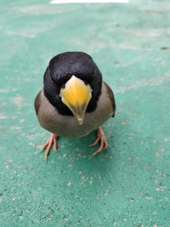 它主动飞到跟前来好奇的望着,依旧是手机拍摄,识物说它是蜡嘴雀,但本人不识货😂