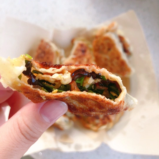 用饺子皮 做的 迷你 韭菜盒子~ 搭配一碗小米粥~舒服的一餐…??
