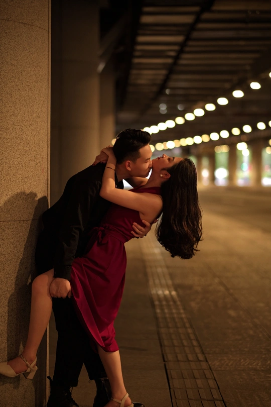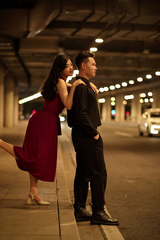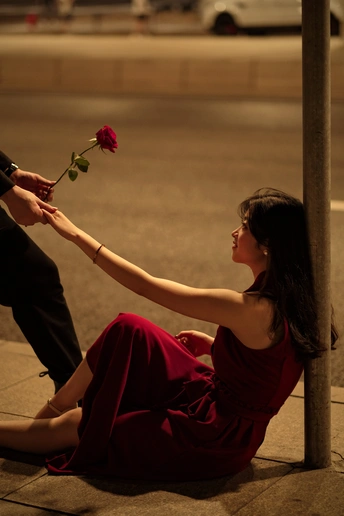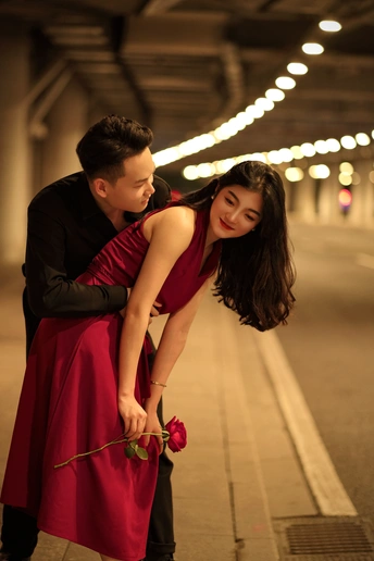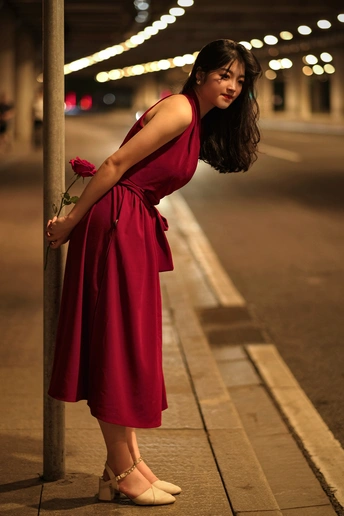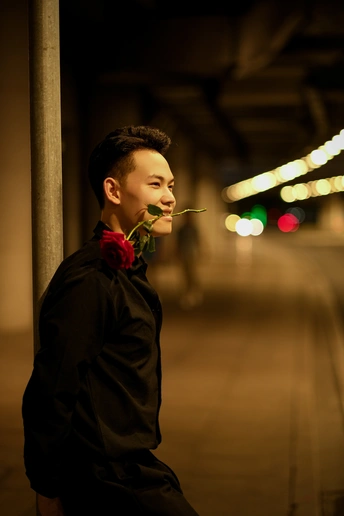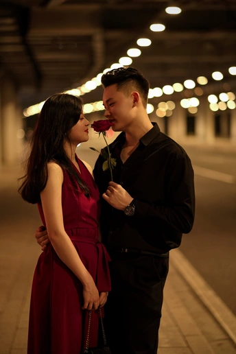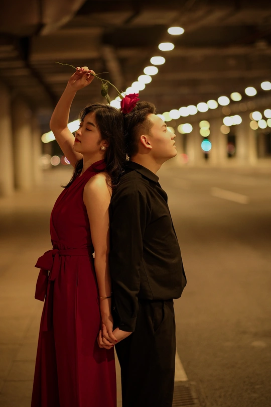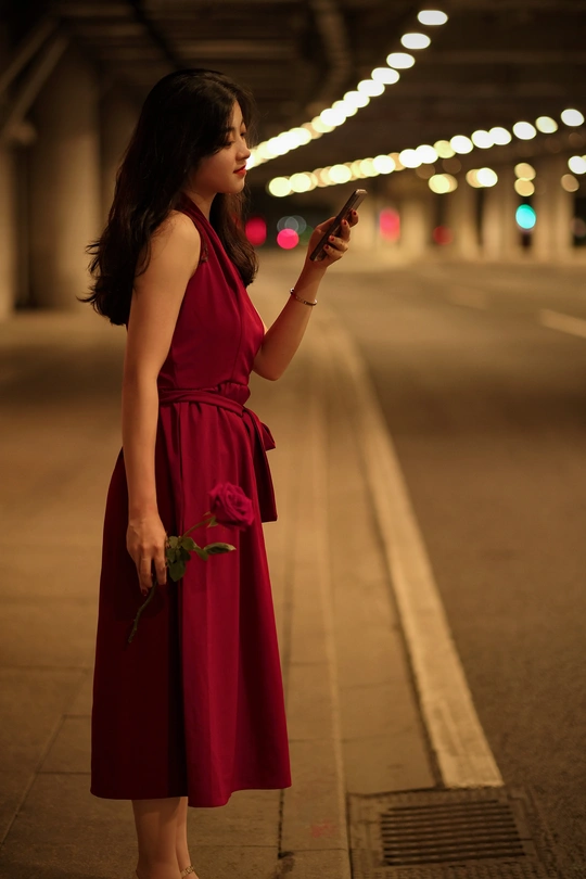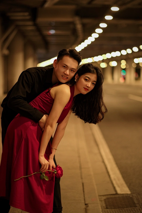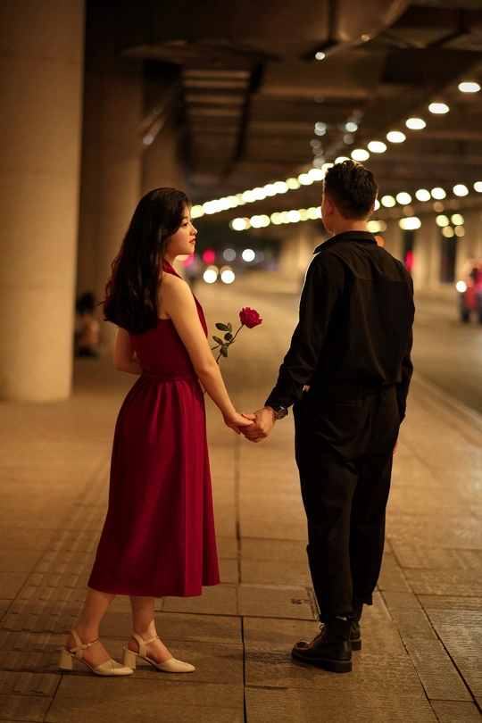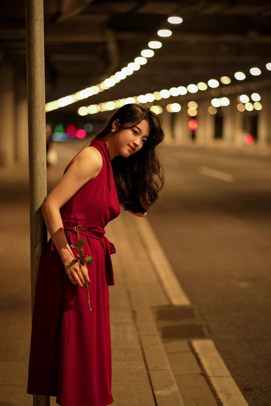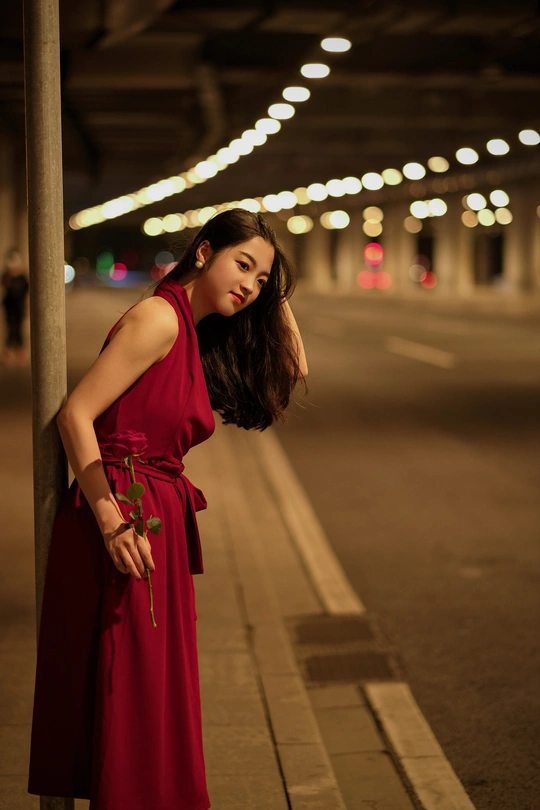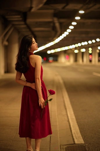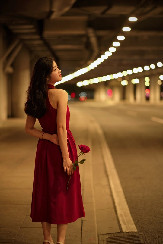 夜晚街道中 隧道里 伱 我手中都拾着玫瑰 , 我等你的郎艳独绝 玉树临风 世无其二 伱等我的倾城佳人 温婉端庄 绝世而独立