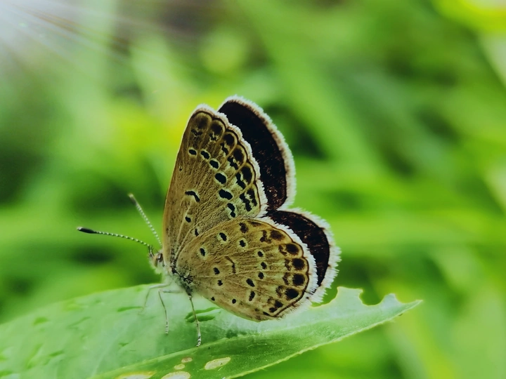 清晨,杂草丛中,发现一只灰蝶钉在一片绿叶上,或许遇上了心仪的叶子,当我小心翼翼蹲下拍摄时,他始终不动,让我留下这美的一瞬。