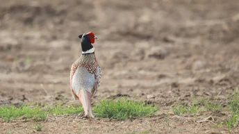 环颈雉一般指雉鸡。 雉鸡(学名:Phasianus colchicus):是鸟纲雉科的一种走禽,共有30个亚种。体形较家鸡略小,但尾巴却长得多。雄鸟和雌鸟羽色不同,雄鸟羽色华丽,多具金属反光,头顶两侧各具有一束能耸立起而羽端呈方形的耳羽簇,下背和腰的羽毛边缘披散如发状;翅稍短圆;尾羽18枚,尾长而逐渐变尖,中央尾羽比外侧尾羽长得多,雄鸟尾羽羽缘分离如发状;雄鸟跗跖上有短而锐利的距,为格斗攻击的武器,近年来还发现距的长度与其所拥有的配偶数量明显相关,是雌鸟选择配偶的一个重要标准。 分布在中国东部的几个亚种,颈部都有白色颈圈,与金属绿色的颈部,形成显著的对比;尾羽长而有横斑。雌鸟的羽色暗淡,大都为褐和棕黄色,而杂以黑斑;尾羽也较短。 栖息于低山丘陵、农田、地边、沼泽草地,以及林缘灌丛和公路两边的灌丛与草地中,杂食性。所吃食物随地区和季节而不同。分布于欧洲东南部、小亚细亚、中亚、中国、蒙古、朝鲜、俄罗斯西伯利亚东南部以及越南北部和缅甸东北部。