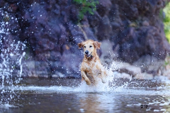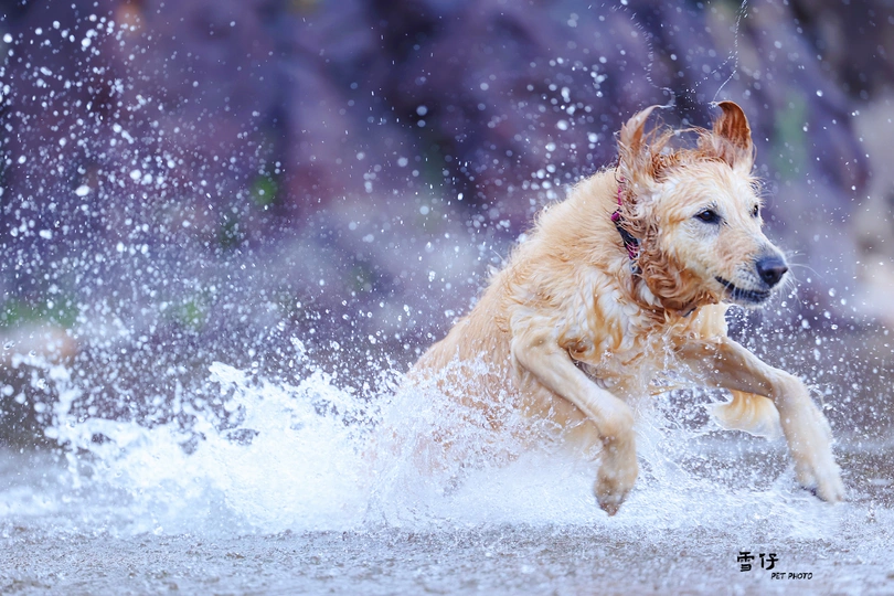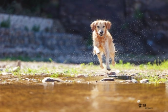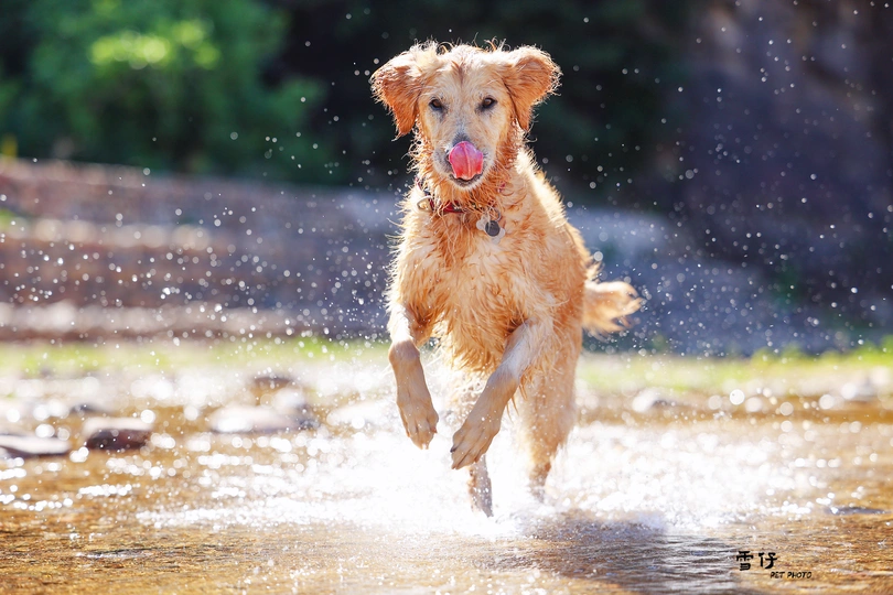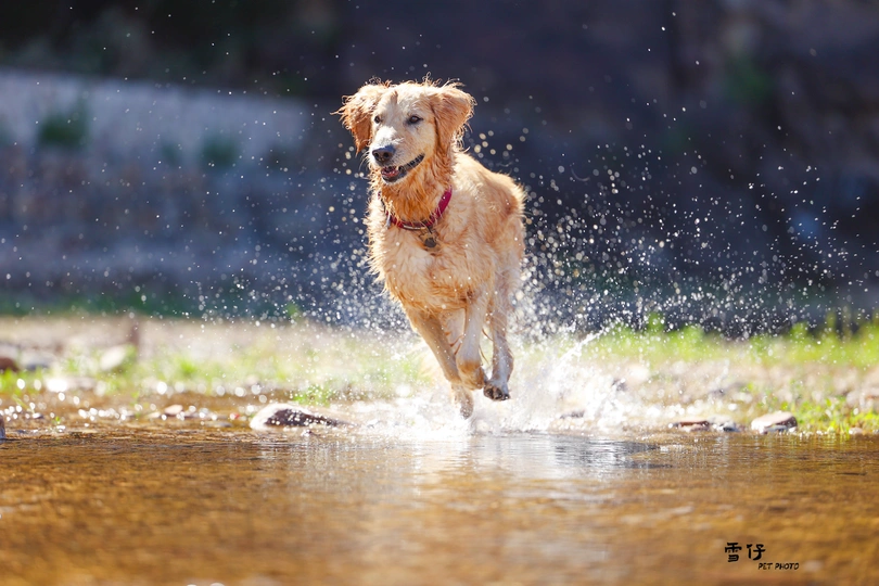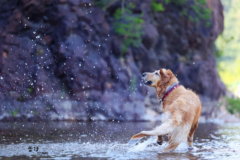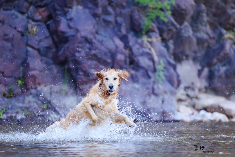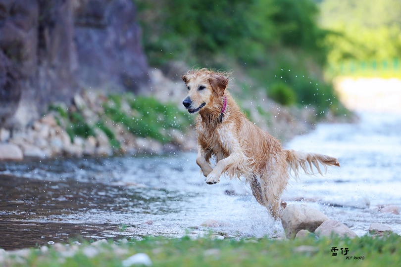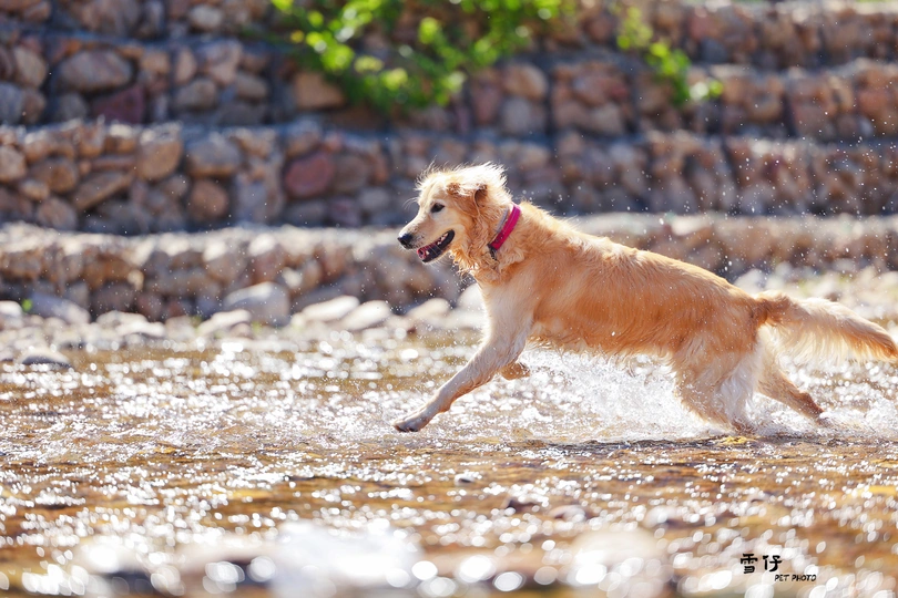 毛孩子的快乐很简单,一条刚没过脚面的小溪就足够啦
