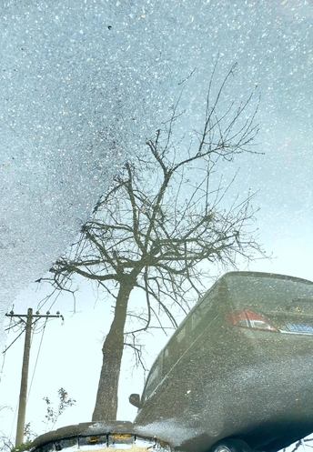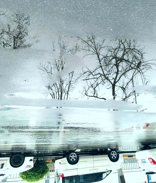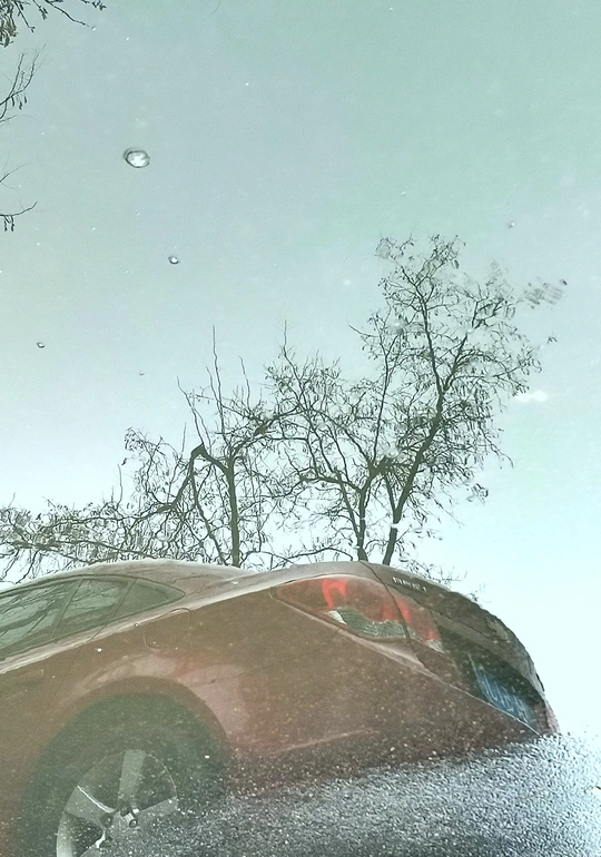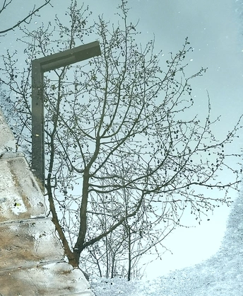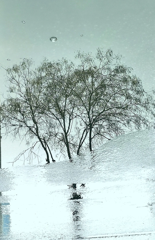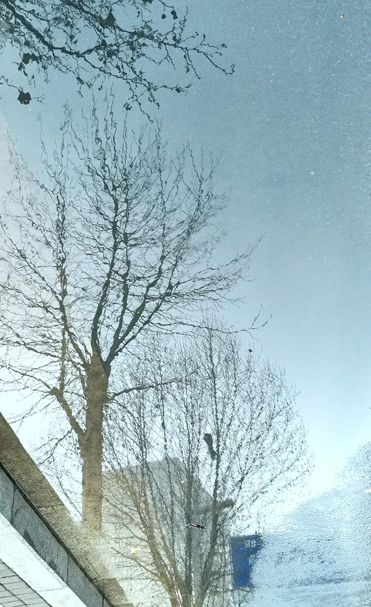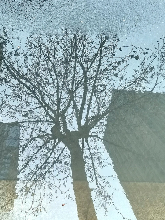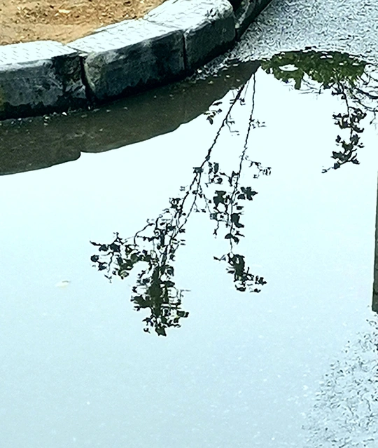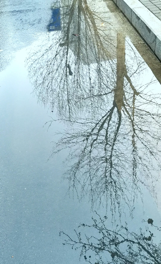 这组水中倒影图是三月中旬拍摄的。 那是郑州刚下过的第一场春雨,路边低洼处积了一些雨水。我骑车在回家的路上,并没有注意到这些积雨水。在我骑过一个小分叉口时,被一个积水中的倒影触动了一下,犹豫了几秒钟,都已经骑过了十几米远,但还是被它的那一刻影像吸引,停下、掉头、逆行骑了回去。把电动车停放在一边,又仔细看了一下,掏出手机拍下了雨水中的倒影。 一路上停停拍拍,欣喜自己的收获。 这组照片我没有按原片展示,而是把正片反倒过来,正反颠倒,感觉效果更像中国白描画。 中间只放了两张是正片,以便比较。 生活中有趣的事情随处可遇,生活中动人的画面随处可拍,就像我们的好标签:眼睛是个好相机。很形象的比喻,只要有一双好眼睛,就能抓拍到好影像。