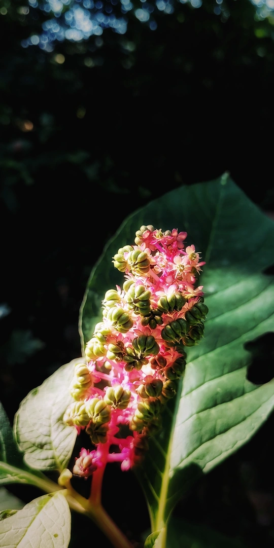 夏日晨光中的野生商陆,在光影的熙射下十分好看,尽显野生植物的自然而然的美!