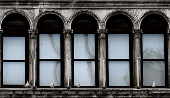 威尼斯的酒店每个窗格停留了一只鸽子,甚是有趣!
