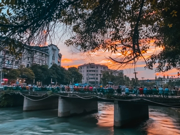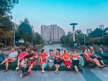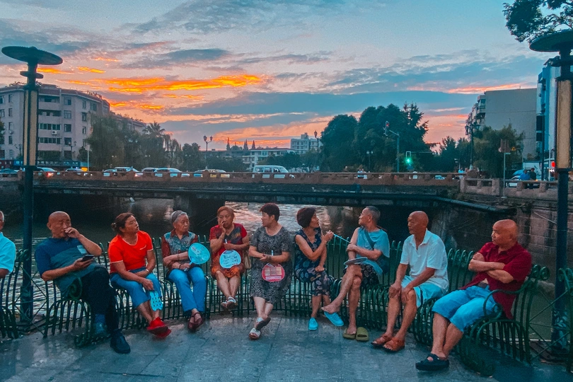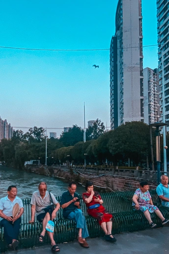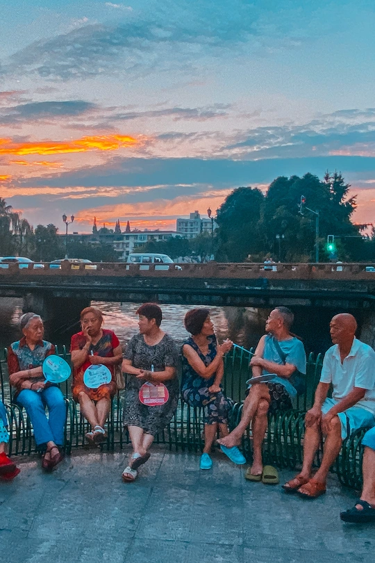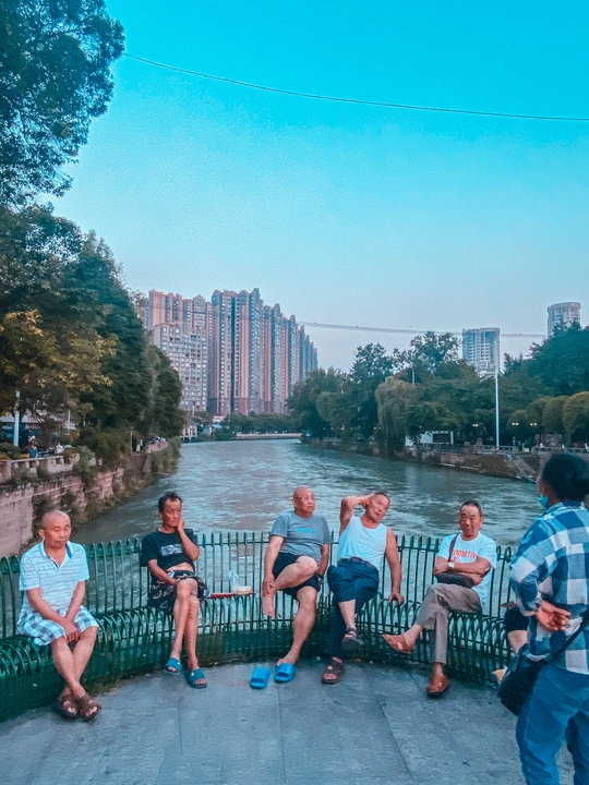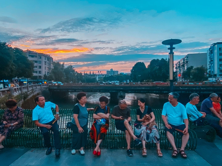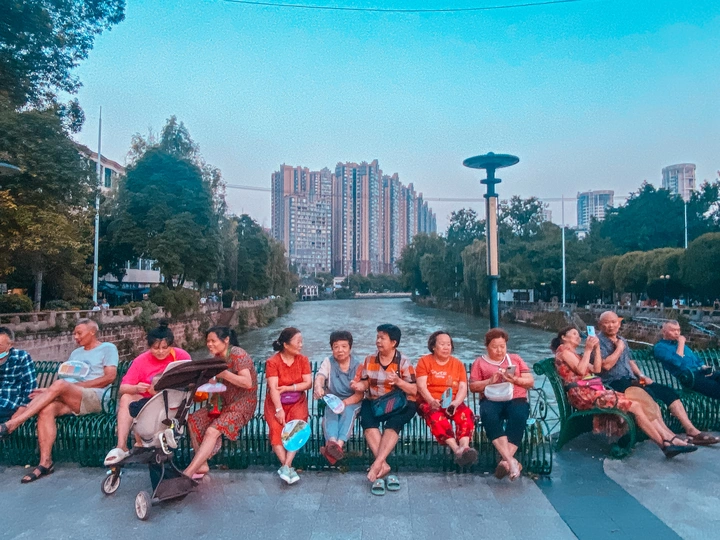 2022.7.2,夏日,小城,河边散步。江安河的桥上,老人们散坐在椅子上,摇着扇子,吹着河风,几十年的日子,就慢悠悠的过去了。