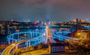 苏家坝立交桥是全国城市最高的匝道桥,高72米。位于重庆南岸区,连接菜园坝大桥的北桥头。该立交桥的建设主要是为了解决菜园坝大桥与海铜路之间30米的高差,采用螺旋形展线方式衔接。远远望去,薄薄的梁体,高耸的桥墩,加上大半径螺旋匝道,犹如游乐园的过山车。 20220701-拍摄于南岸区铜元局