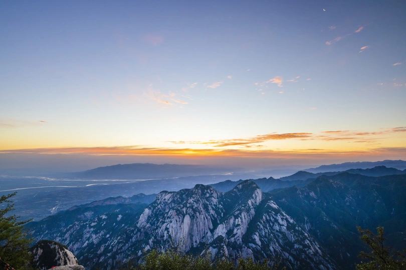 华山,古称“西岳”,是我国著名的五岳之一,位于陕西省华阴市境内,距西安120公里,秦、晋、豫黄河金三角交汇处,南接秦岭,北瞰黄渭,扼大西北进出中原之门户,素有“奇险天下第一山”之称。华山系一块完整硕大的花岗岩体构成,其历史衍化可追溯至27亿年:《山海经》载:“太华之山,削成而四方,其高五千仞,其广十里。”华山之险居五岳之首,有“华山自古一条路”的说法。 华山有东、西、南、北、中五峰,主峰有三:南峰“落雁”,为太华极顶,海拔2160.5米;又有东峰“朝阳”,西峰“莲花”,三峰鼎峙,“势飞白云外影倒黄河里”,人称“天外三峰”。云台、玉女二峰相辅于侧,36小峰罗列于前,虎踞龙盘,气象森森,文人谓之西 京王气之所系。山上奇峰、怪石、云海、鸣泉、飞瀑、古迹遍布,著名景点多达210余处有凌空架设的长空栈道,三面临空的鹞子翻身,以及在峭壁绝崖上凿出的千尺幢、百尺峡、老君犁沟、上天梯、苍龙岭等。华岳仙掌被列为关中八景之首。因山上气候多变,形成的“云华山”、“雨华山”、“雾华山”、“雪华山”给人以仙境美感。