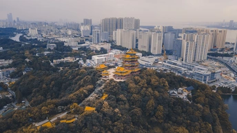 雨后阳光洒在南京阅江楼上,金光灿烂,如仙帝下凡