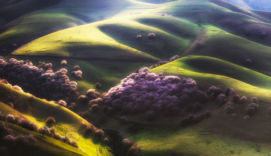 去年拍摄于伊犁杏花沟,早早的赶往目的地就为了这一缕晨光,清晨的光线打在此起彼伏的山坡上宛如人体曲线一般优美。