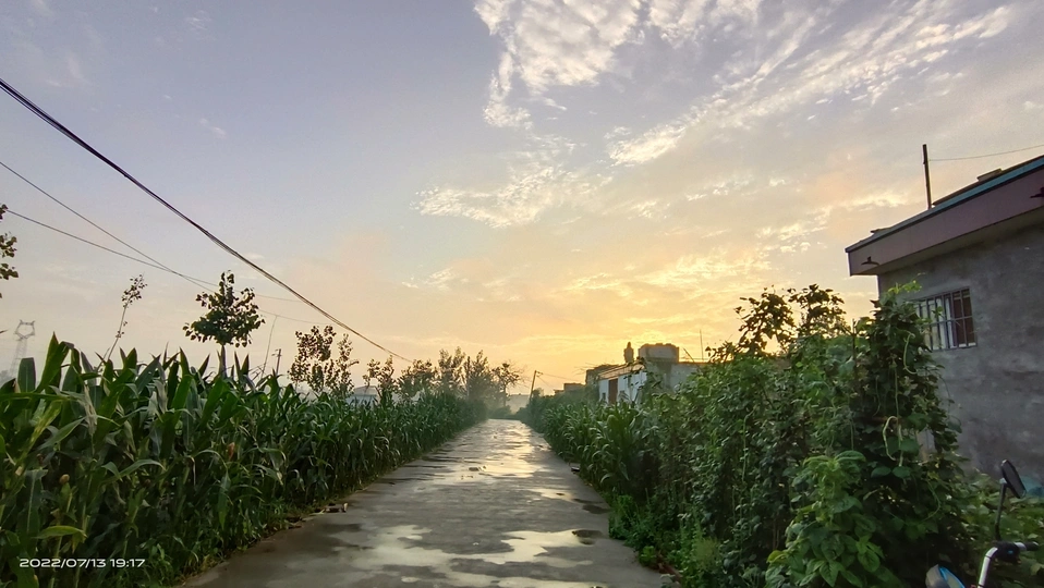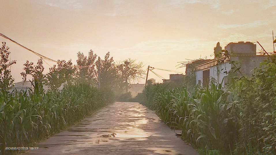 村庄的傍晚,雨后格外的安静,下了几天的雨,终于放晴了,生活随手拍!——乡间小路!