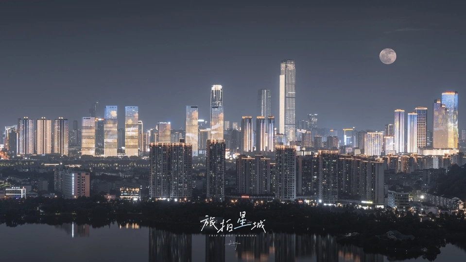 湘江风光带与超级月亮