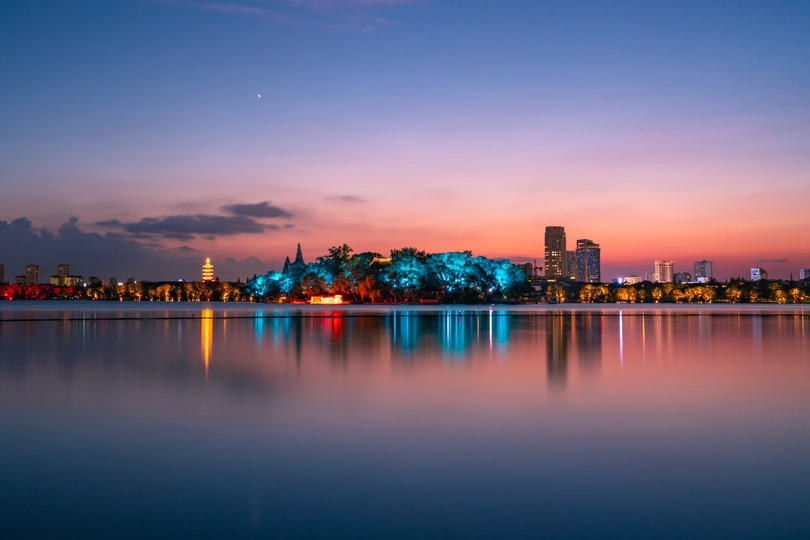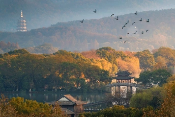 浙江各地的美景:杭州西湖秋天的落霞孤鹜,嘉兴南湖夏天的晚霞流云,舟山嵊泗海上的霞光万丈,衢州江郎山月夜的点点繁星,杭州千岛湖远山的层峦叠嶂。
