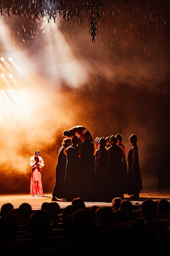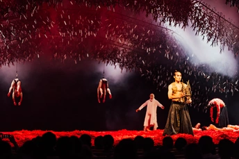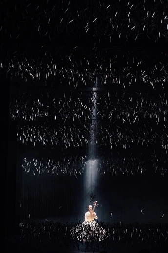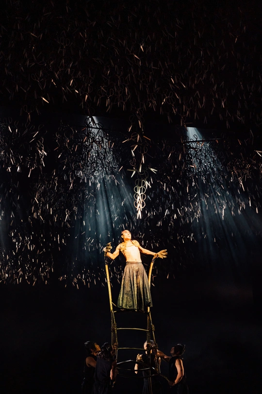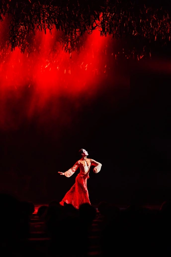 ➡️7.27 // 杨丽萍舞蹈剧场《十面埋伏》 ⚠️难以言喻的现场效果,场景设计、故事线阐述、舞美、舞蹈表演都令人惊叹。 ✅将/相/霸/忍/斗 ▪️萧何时而局中人,时而局外人诉说解说。 ▫️头悬万把剪刀夹杂着冰冷的金属声、凄厉的琵琶声开场,牵引着观众进入危机四伏的战场。 ▪️刘邦的粗野、滑头,鬼魅轿舞阴险狡诈。 ▫️黑白韩信的不同自我。 ▪️男演员表达出的坚毅而又柔媚的虞姬,翩跹而舞。 ▫️项王飘逸着黑色纱裙,诉说着豪情壮志。 ▪️轻妙的一地红羽写实了厮杀中唯美的壮阔与摄人的血腥。 ▫️《垓下歌》曲终,虞姬离去,霸王乌江自刎,不肯渡船过江东,乌骓马一头入江无影踪。难怪“至今思项羽,不肯过江东”。 ▪️在霸王僵立的躯体旁边,赤身裸体的江东子弟成片地倒在血色中,身躯透着白光,像一堆白骨,所谓“一将功成万骨枯”。 ▫️全剧终,项羽死去,漫天的剪刀阵吊着两具死尸从天徐徐落下,而后突然猛落地,发出的刺耳声响,也是对千古以来战争发出的一声叹息。 ▶️演出全程叙述流畅,剪纸老师在台边全程端坐铺设故事线,点睛之笔。 ✨十面埋伏,楚歌四起,以舞重新演绎历史长河里的吉光片羽,致敬每一位演员。 📷尼康 Z6+Z2470mmF4s+85mmF1.8s