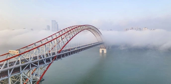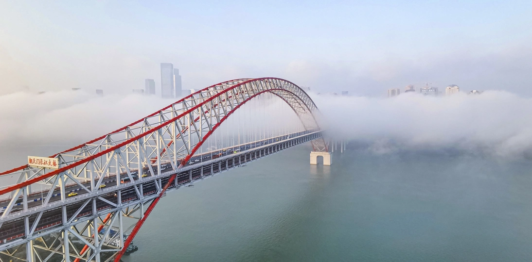 雨后初晴的朝天门长江大桥,云雾缭绕、如梦如幻。