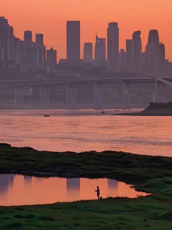 新修好的外滩广场每天早上有很多晨练的人,见证了重庆一天美好的开始。
