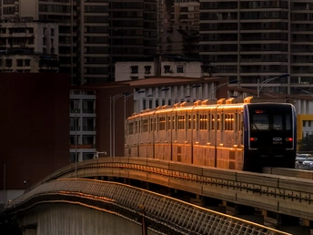 拍摄:小清水 手机:华为nova7por 地点:牛角沱 时间:2022年7月26日晚上19点23分 乘坐着轻轨经过牛角沱,也正是夕阳西下之时,漫无目的寻找着最美时刻,转头的一瞬间忽然发现轨道上出现优美的光影。拿起手机的那一刻,正等待着一辆轻轨驶入画面之中…… @米拍 @米拍社长 @米拍摄影学院