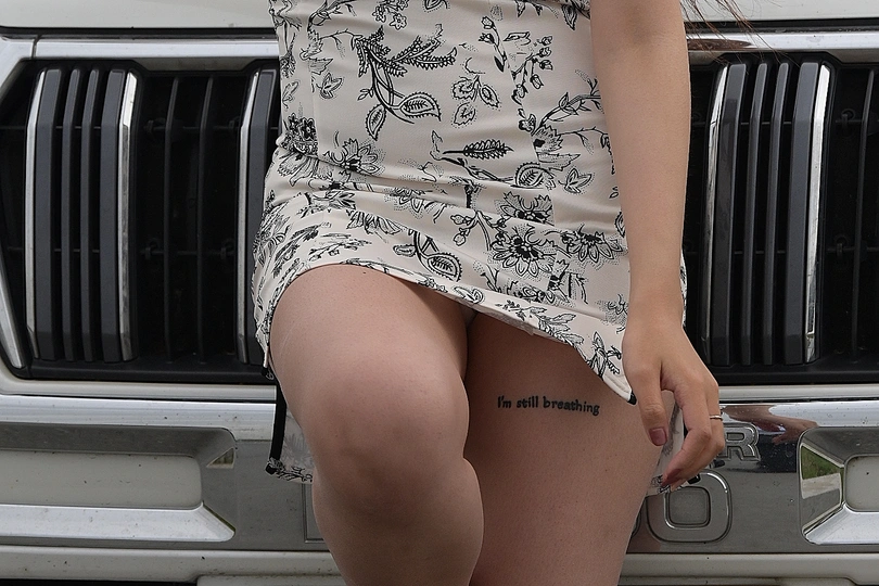 拍了她好几次了,她才硕士毕业两年多,但总感觉她还是停留在青春靓丽的大女孩的状态。 据我所知,她最不能接受的就是:在那个”他“的眼里,她居然和别人没有什么不同。 颇有开放个性的她,平时就那么样地耍个性,比如纹身,等等等等。 是的,她就希望自己能保持一种单纯的个性,因为每个人都有自己的独特性,她宁愿去感受一些很消极的东西,也不愿什么感觉也没有。 让她最无法承受的就是自己不被人爱的境遇,这会使她感觉特别难受。但妈妈曾对她说,欣赏自己,足够爱自己才是真正的体面。 是的,并不是在身上凡可以露的部位都去纹一些美纹,才算是与众不同的,才是够体面的。 我之所以选些都有纹身的照片,是因为我也很喜欢她的个性,就是与众不同,就是傲而不慢,就是守正不阿。我也非常认可那隐藏在她大腿深处的文字:“I 'm still breathing " ——意思是:”我依旧是栩栩如生的。“ 这是不是就觉得她生命感很强,有一种历经曲折的生命的光溢出来了?
