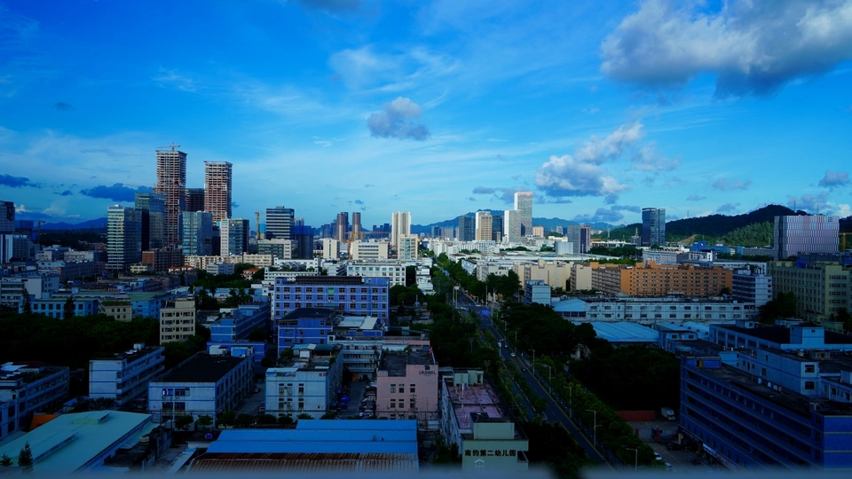 深圳龙岗高科大道两旁建筑高楼光影