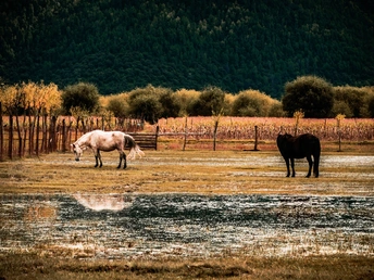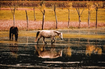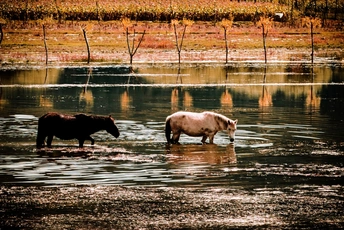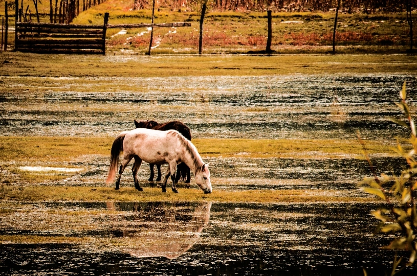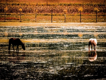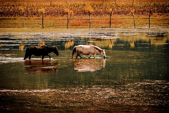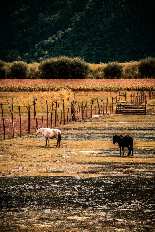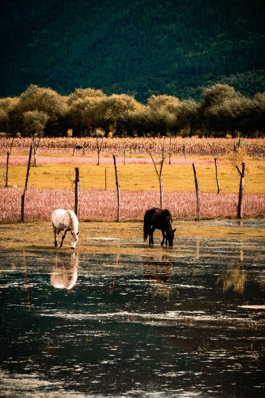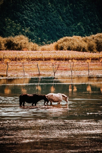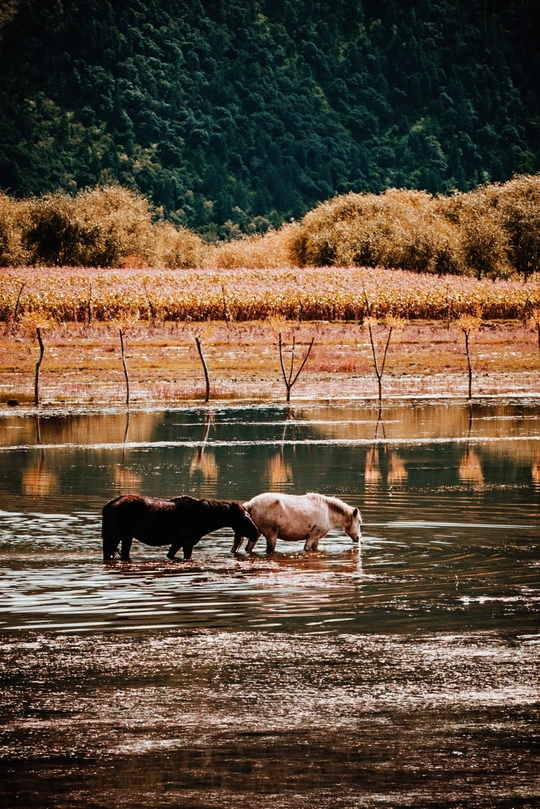 这是几年前在藏区偶然拍到的一组照片,余晖下两匹马儿站在浅滩处,时而慢步,时而低头啜饮,形影不离,默然相伴,寂静欢喜,眼前一幕好有爱呀,所谓的朝朝暮暮,日日月月,这种纯粹的感觉,真的太美好了