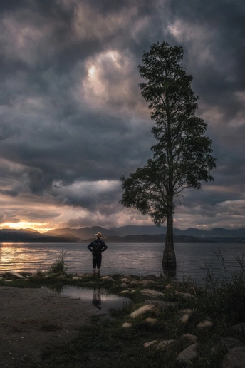 4点30起床打车赶向洱海的龙龛码头,五点30左右到达,已有不少人到达等待日出,然而天公并不是很作美,多云的天气一直持续,只有偶尔的空隙才能窥见太阳的真容,就这样一直半遮半掩,一束阳光顺着远方的山隙透了出来。 ,梦幻万分。