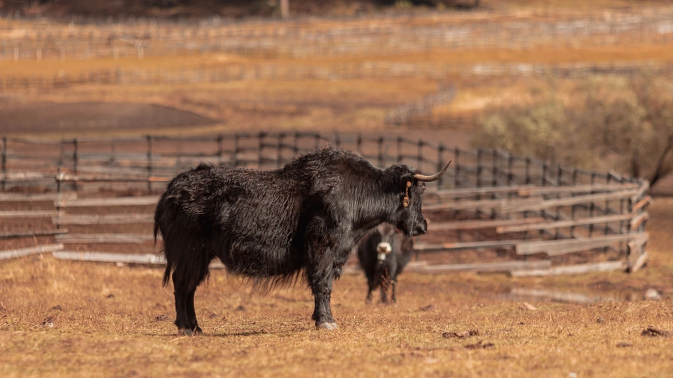 拍摄于西藏林芝鲁朗小镇 傍晚 夕阳将草场染黄 牦牛儿似乎已经吃饱 在放空自己