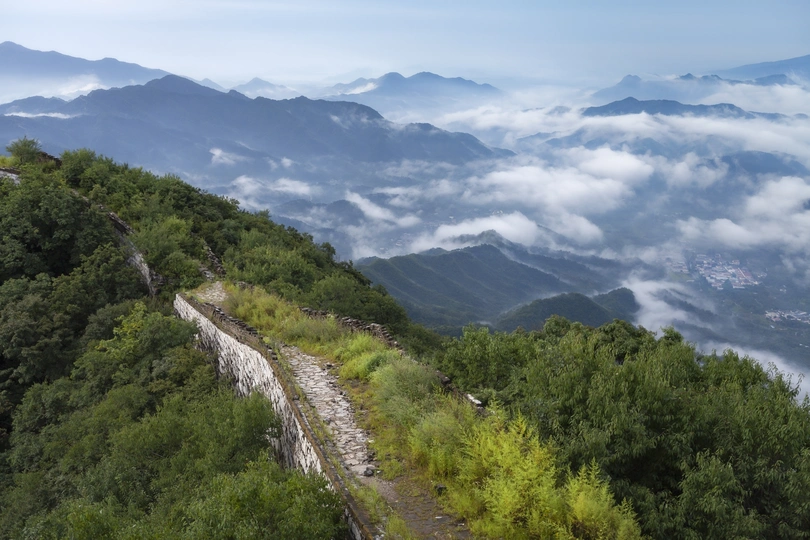 周末傍晚的一场豪雨,燃起了我去箭扣正北楼碰碰朝霞云海的欲望。凌晨时分从城里冒着大雨出发,所幸到山脚下时雨已经小了。 站在山顶,一派远山含黛、流云如水的壮美景象,令人豁然开朗,古老的长城犹如天宫,在流云之上缓缓飘动。 虽然没有拍到晨光云海,但这也足以慰籍爬山时的气喘如牛的自己了。