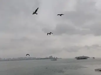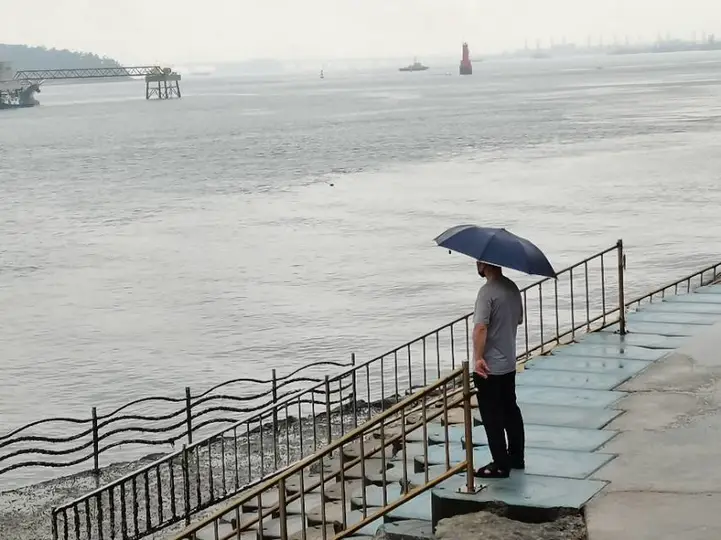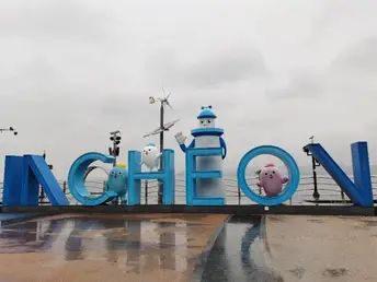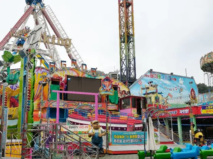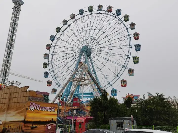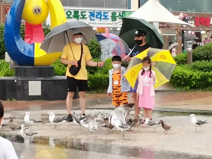 韩国仁川的海边,即使下着雨,也有很多人游玩。尤其这里的游乐设施吸引了很多小朋友。雨中的海是截然不同的感觉