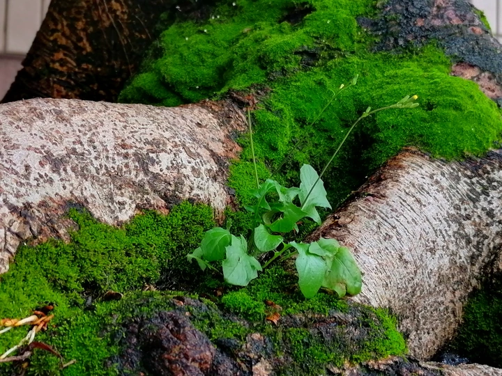 青苔不会开花,哪怕是开一朵小野花;青苔不会结果,哪怕是结一个小野果。但它以顽强的生命展示着自己的活力。青苔不是我想象的那样黏糊糊的,摸上去十分舒服,它是由一根根小针形的叶片组成的,倒有点像松柏的叶子。@米拍社长 @米拍