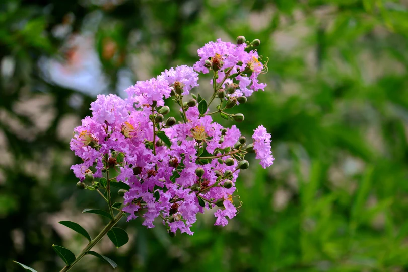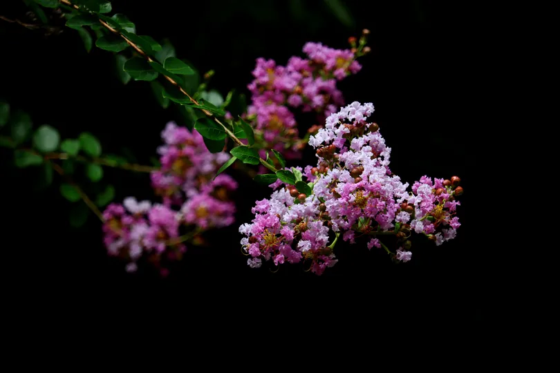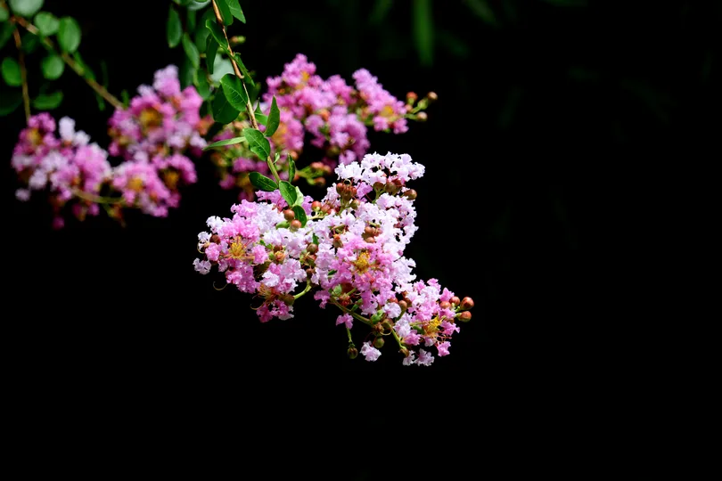 紫薇是千屈菜科、紫薇属植物。落叶灌木或小乔木。紫薇高可达7米,枝干多扭曲、小枝纤细,树皮平滑、灰色或灰褐色;叶互生或有时对生,纸质,椭圆形、阔矩圆形或倒卵形,幼时绿色至黄色,成熟时或干燥时呈紫黑色,室背开裂;种子有翅,长约8毫米;花期6-9月,果期9-12月。原产亚洲,广植于热带地区。中国广东、广西、湖南、福建、江西、浙江、江苏、湖北、河南、河北、山东、安徽、陕西、四川、云南、贵州及吉林均有生长或栽培;半阴生,喜生于肥沃湿润的土壤上,也能耐旱,不论钙质土或酸性土都生长良好。紫薇树姿优美,树干光滑洁净,花色艳丽;开花时正当夏秋少花季节,花期长,故有“百日红”之称,又有“盛夏绿遮眼,此花红满堂”的赞语,是观花、观干、观根的盆景良材;根、皮、叶、花皆可入药。