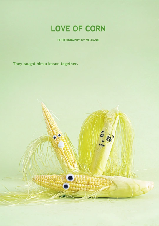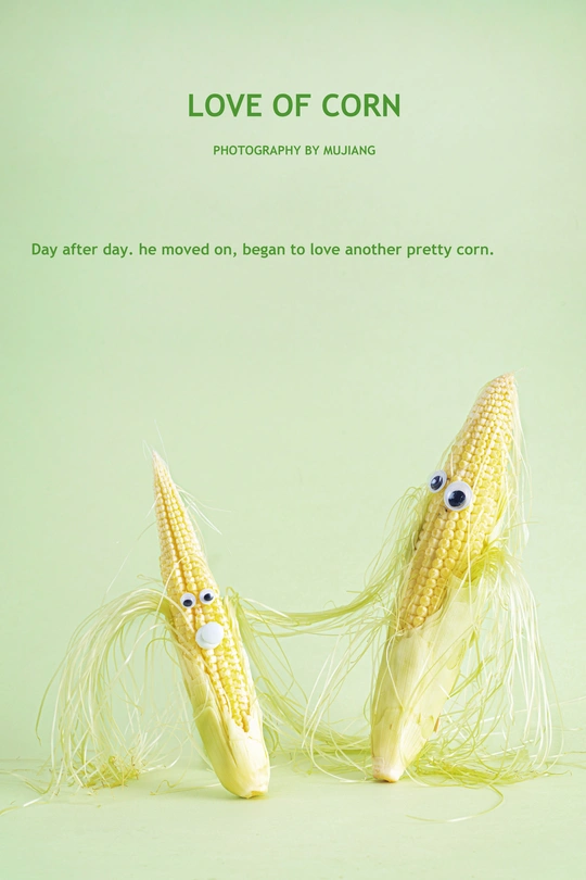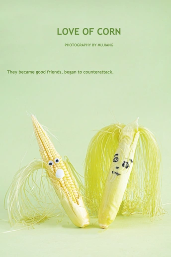 有一个帅哥玉米和一个美女玉米。帅哥玉米爱上了美女玉米并幸福的在一起。好景不长,帅哥变成渣男,开始移情别恋。成功和另一位玉米女神在一起之后本性不改继续移情别恋(眼神能看出来)。两位女神玉米准备联合起来回击渣男。渣男被打倒 故事结束啦 相比于静物摄影,我可能更爱创意摄影,我可以把自己幻想的故事和我爱的摄影结合在一起,每次拍完都觉得幸福感满满。 @米拍社长 @米拍