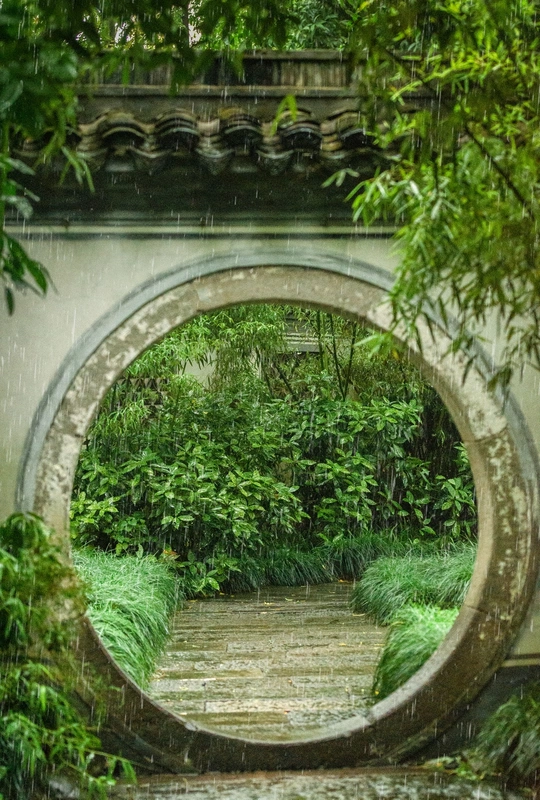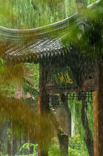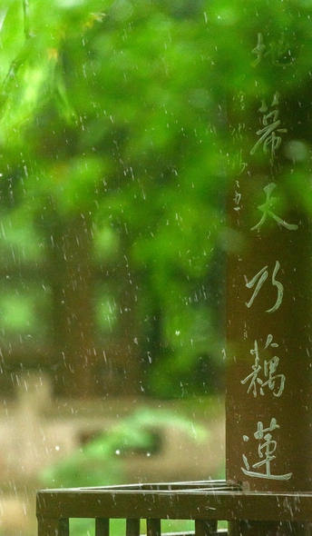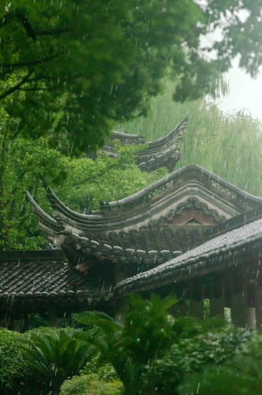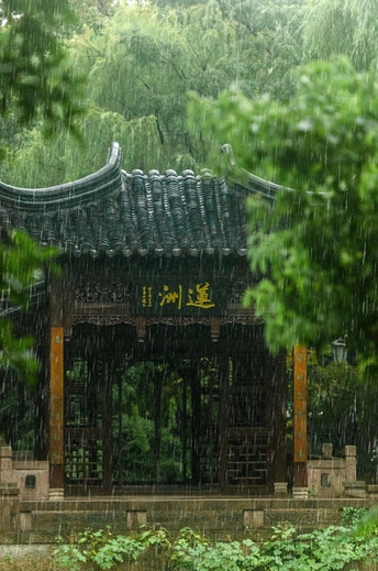 绍兴连续40℃高温40多天,一场台风秋雨横扫酷暑,还一份清凉给初秋。鹿湖园小众静谧的江南小园,非常适合雨天听风看雨发呆放空。
