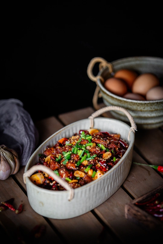 是时候展现厨艺了,从备菜、炒菜、布景、拍摄一气呵成。不过拍完后菜都凉了,算是冷吃辣子鸡。[色]
