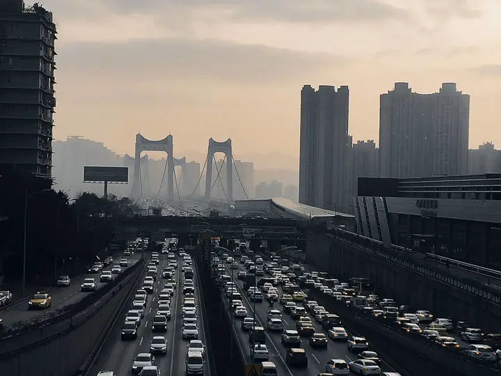 每天上班必经之路 鹅公岩大桥 即使堵车,也是一种美景。混沌都市,钢筋水泥,嘞是雾都。