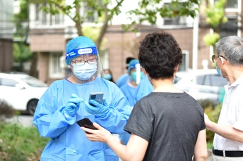 These photos were shot in 24th July 2022. This day, all volunteers put on blue protective suit to help nucleic acid sampler for carry out nucleic acid detection. Some of people were keeping order, some of people were checking in with the tabulation, and the other people were helping nucleic acid sampler to count the number of nucleic acid detection. According to the information, Xuhui government was carring out nucleic acid detection for consolidate achievements in epidemic prevention and control to finding epidemic situation by COVID-19 Pandemic. Most of citizens were very cooperative, and they were really understand. I believed that COVID-19 were ending as soon as possible. We could return common life. ———————————————————————————— 本人英文不咋地,这一次主要是想练习一下自己的英语写作水平。可能有很多语法错误,望众位同仁可以指出错误,以便改进。Merci~