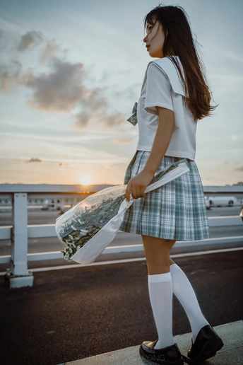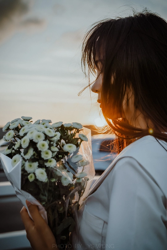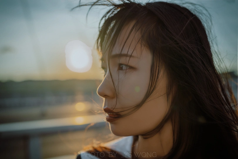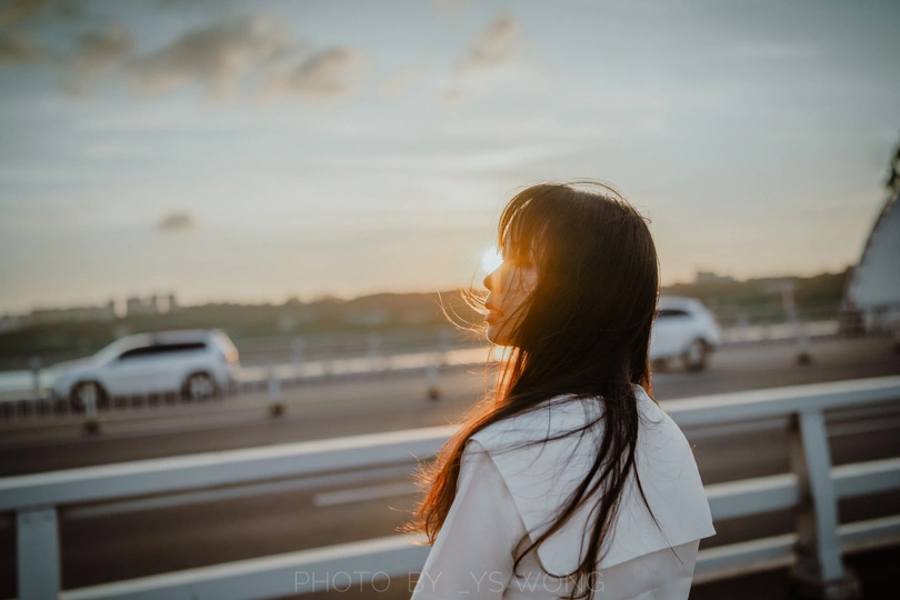 桥上的夕阳,透过头发,让其散发出了光[抱抱]