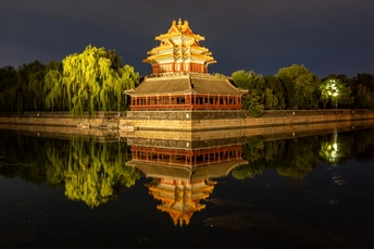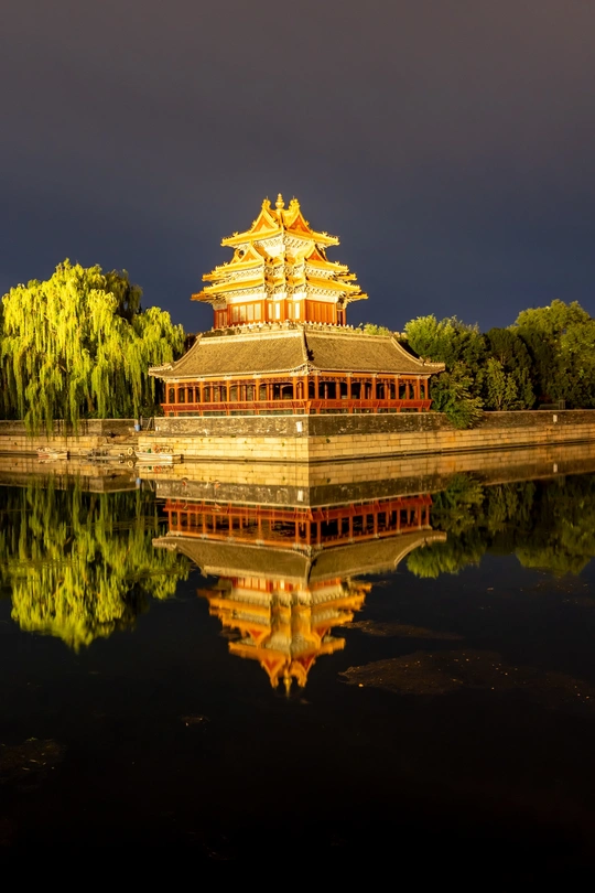 第一次是为了拍晚霞去角楼,那天是周五。晚霞爽约了,但听说一会角楼会亮灯,等到了七点半,没有再等下去。回到家从群里得知,角楼八点亮灯。于是第二次出发前往角楼。担心错过角楼亮灯时刻,提前五分钟就开了视频等候,当那一束光打到角楼时,那一刻只觉得耀眼的金光。