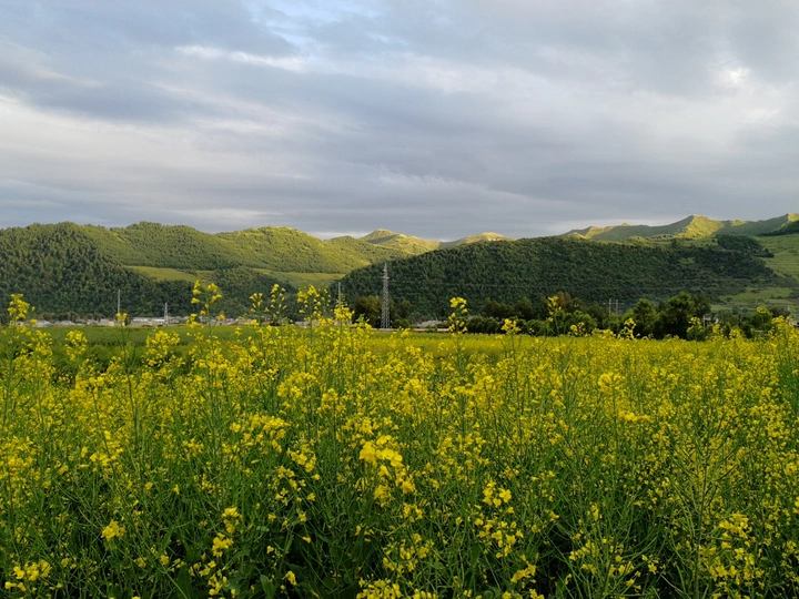 高原上的阳光洒在麦子和油菜花上格外有生机