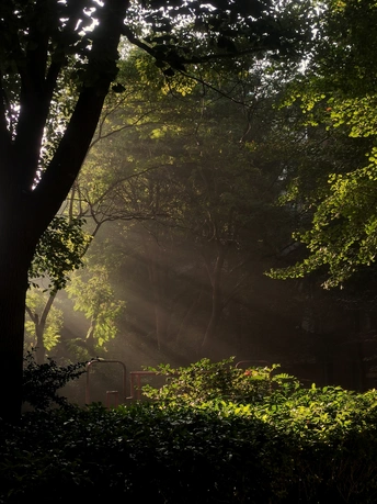 秋日的清晨,丁达尔效应她是穿透树林最唯美的阳光!